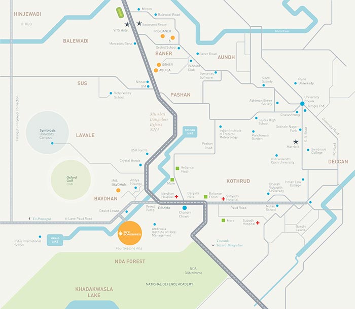 Bavdhan, Paud Road offers excellent connectivity to adjoining suburbs, the city and beyond through a robust road and metro infrastructure.